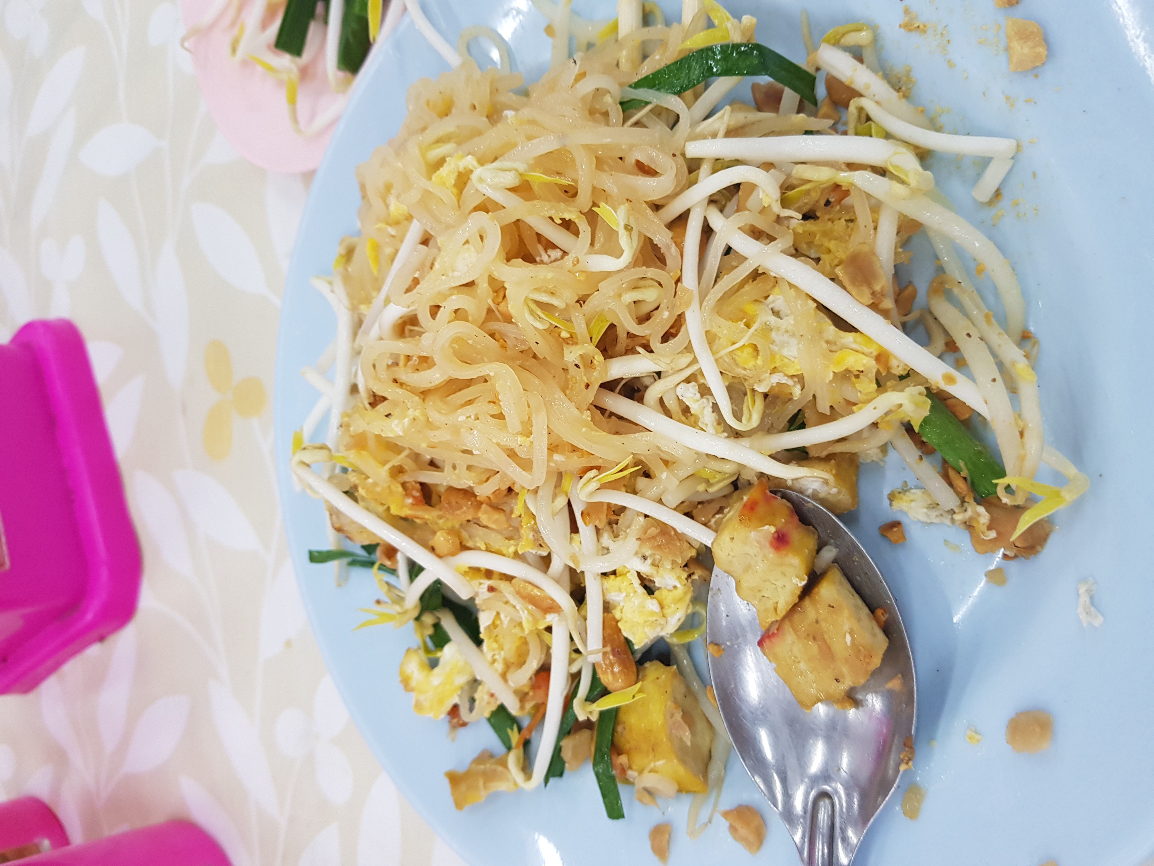 오던 길을 더듬어 다시 시장으로 갔다. 이번만큼은 시장의 맛을 먹어보리라. 골목 골목 훑다보니 역시나 식당들이 있었다. 팟타이 오리지널 하나 주세요. 관광객을 대상으로 한 곳이 아니라서 한 그릇에 40바트. (아까 먹은 아아메가 100바트였는데.) 주문하고 자리에 앉는 나와 내 앞자리를 몇번이고 다시 닦아주는 주인아저씨. 갓볶은 팟타이를 내오며 뜨거우니 조심하라고, 이건 매우니 조금만 넣으라고 소스통을 하나하나 짚어 설명해주는 아주머니. 수저통까지 통째로 들어다 놔주며 부부가 나를 바라본다.