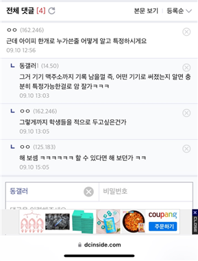 마지막엔 이런 글이 올라왔다. 이 아이피는 서울대학교 와이파이였다.