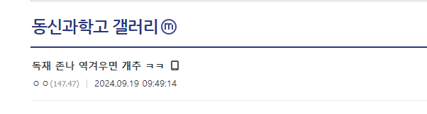 찾고 싶은 아이의 정보는 안 보이고 뜻밖의 게시판이 검색되었다. 디시인사이드 동신과학고 갤러리였다. 후에 나는 이 게시판을 클릭한 것을 두고두고 후회했다. 만약 나에게 시간을 되돌릴 수 있는 기회가 딱 한번 주어진다면 나는 9월 8일 저녁시간으로 돌아가 절대로 검색 따윈 하지 않는 쪽을 택할 것이다.
