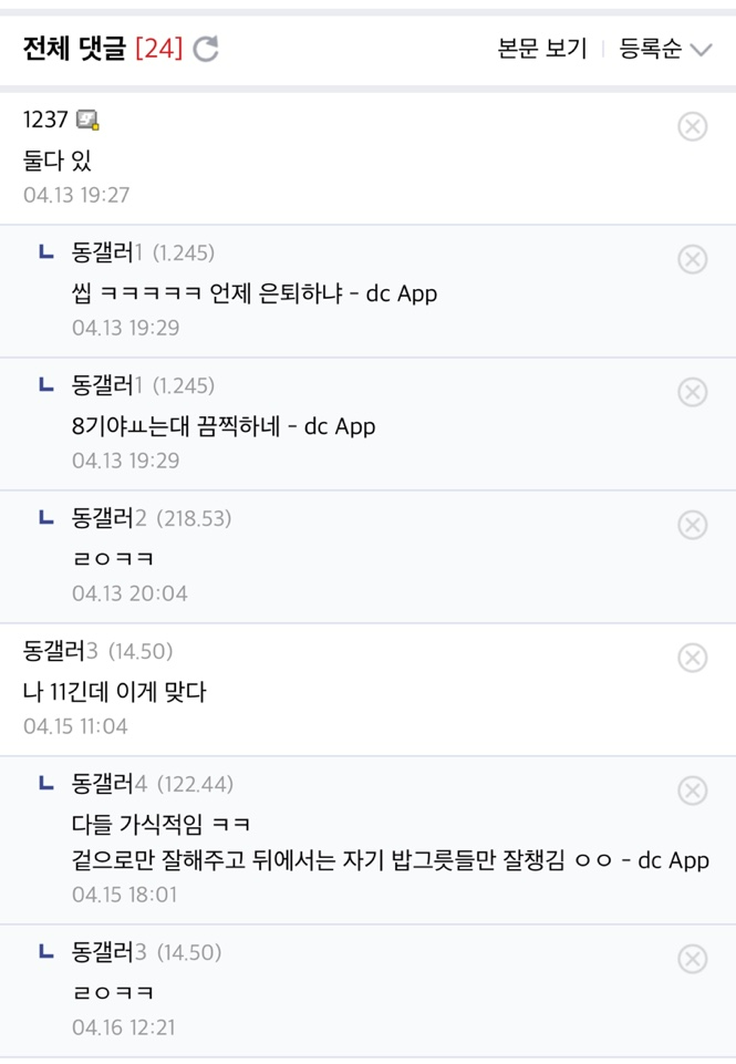 권한을 받자마자 갤러리를 폐쇄했어야했는데, 폐쇄를 위해서는 2차 인증을 해야했다. 학교 일에 바빠 하루 이틀 미루다 폐쇄 신청을 접수한 게 하필 추석연휴 첫 날이었다. 마이너 갤은 폐쇄요청이 들어가면 폐쇄 진행 중임이 모든 사용자에게 공지가 된다. 문제는 평소같으면 하루면 끝날 폐쇄 과정이 쓸데없이 오래걸렸다는 점이다. 연휴가 포함되어 무려 5일을, 폐쇄가 진행중이지만 폐쇄되지 않은 상태로 남아있었다. 그리고 이 시간 동안, 인간이라면 어떻게 저럴 수 있을까 싶은 수많은 글이 올라왔다.