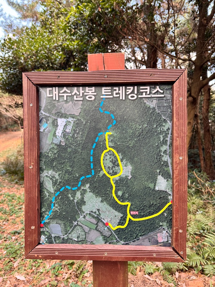 여기까진 좋았다. 그런데 왜 간세가 안 보이는 거죠? 그러고보니 올라오는 길 어디에서도 올레길을 뜻하는 파랑&주황 리본을 보지 못했다. 어…? 잊고 있던 구글맵을 켜서 위치를 보는데 뎀. 여기는 정상이 아니었다. 그럼 여긴 어디죠?