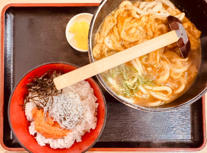 Osaka 10끼. 마지막 날 아침은 숙소 앞 우동 맛집. 현지인 맛집이라길래 가봤는데 진짜 일본어 키오스크밖에 없어서 당황. 씩씩하게 번역기 돌려 주문했는데 세트 두 개에 오니기리까지 추가로 주문해버린 셈이라 양이 어마무시해서.. 다먹음. -_- (재니는 이 집 카레우동이 이번 여행 음식 중 최고였다고)