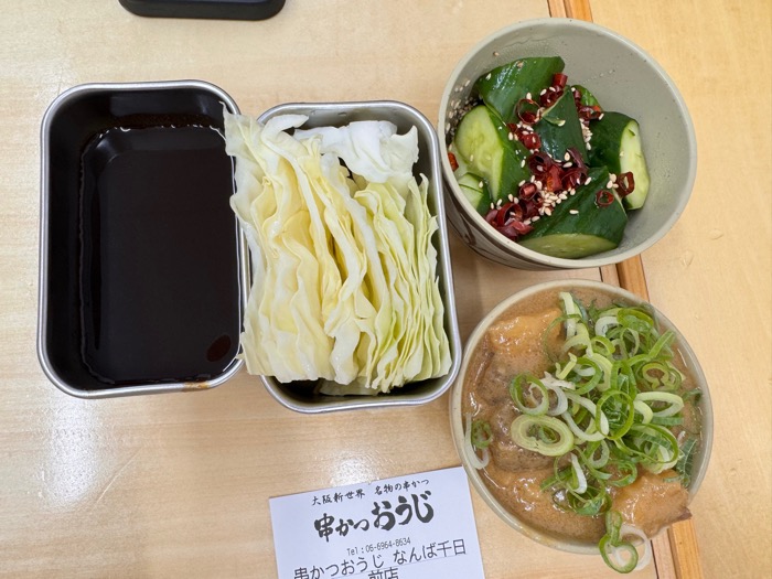 분명 내 기억 속 오사카 쿠시카츠는 샤브샤브처럼 직접 자리에서 튀겨먹는 꼬치였는데, 요즘은 그런 시스템이 없어진 듯., 어딜 가도 튀겨서 갖다주는 곳 뿐이었다. 게다가 이 집은 세트 구성이 그냥 그랬음. 굳이 간다면 단품주문 추천. (배가 불러서였을 지도?)